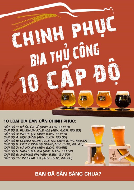🍻Thách thức bản thân với 10 cấp độ bia thủ công từ thấp đến cao, màu sắc, hương vị khác nhau.