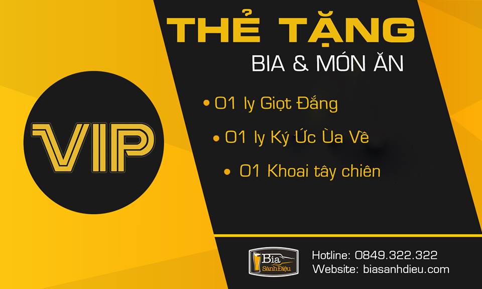ĐĂNG KÝ trở thành “Thành Viên Bia Sành Điệu" để được cấp thẻ VIP GOLD ngay sau lần đầu tiên đến nhà hàng.