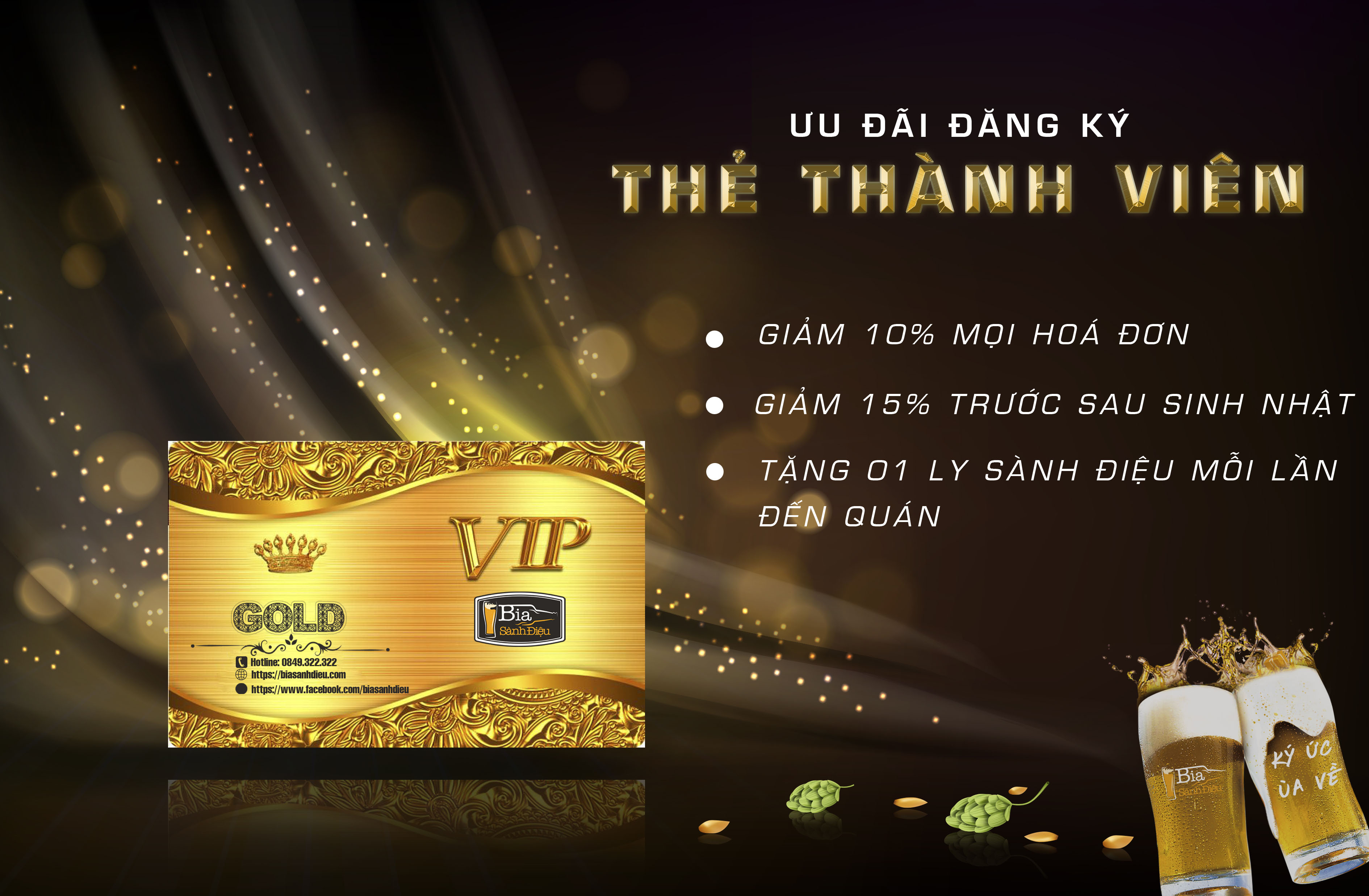 ĐĂNG KÝ trở thành “Thành Viên Bia Sành Điệu"  để được cấp thẻ  VIP GOLD ngay sau lần đầu tiên đến nhà hàng.