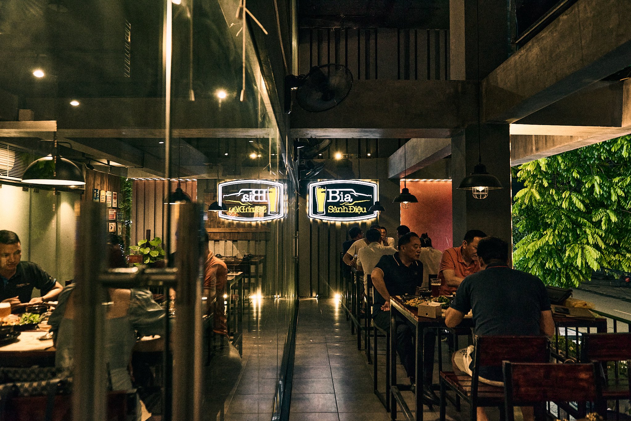 Ấn tượng đầu tiên khi bước chân vào Bia Sành Điệu chính là không gian " CHẤT ", được thiết kế theo phong cách cao bồi miền tây, tông màu trầm và có 3 tầng sức chứa gần 200 người. Khu ban công thoáng với view đường phố lung linh.